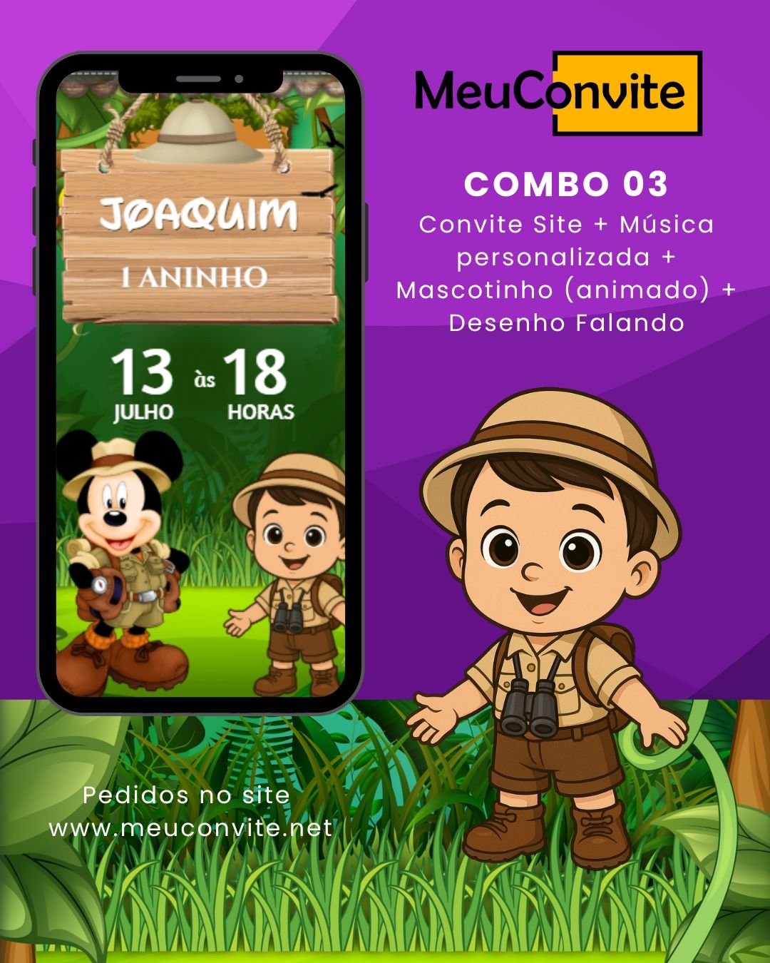 Convite Site + Música personalizada + Mascotinho (animado) + Desenho Falando